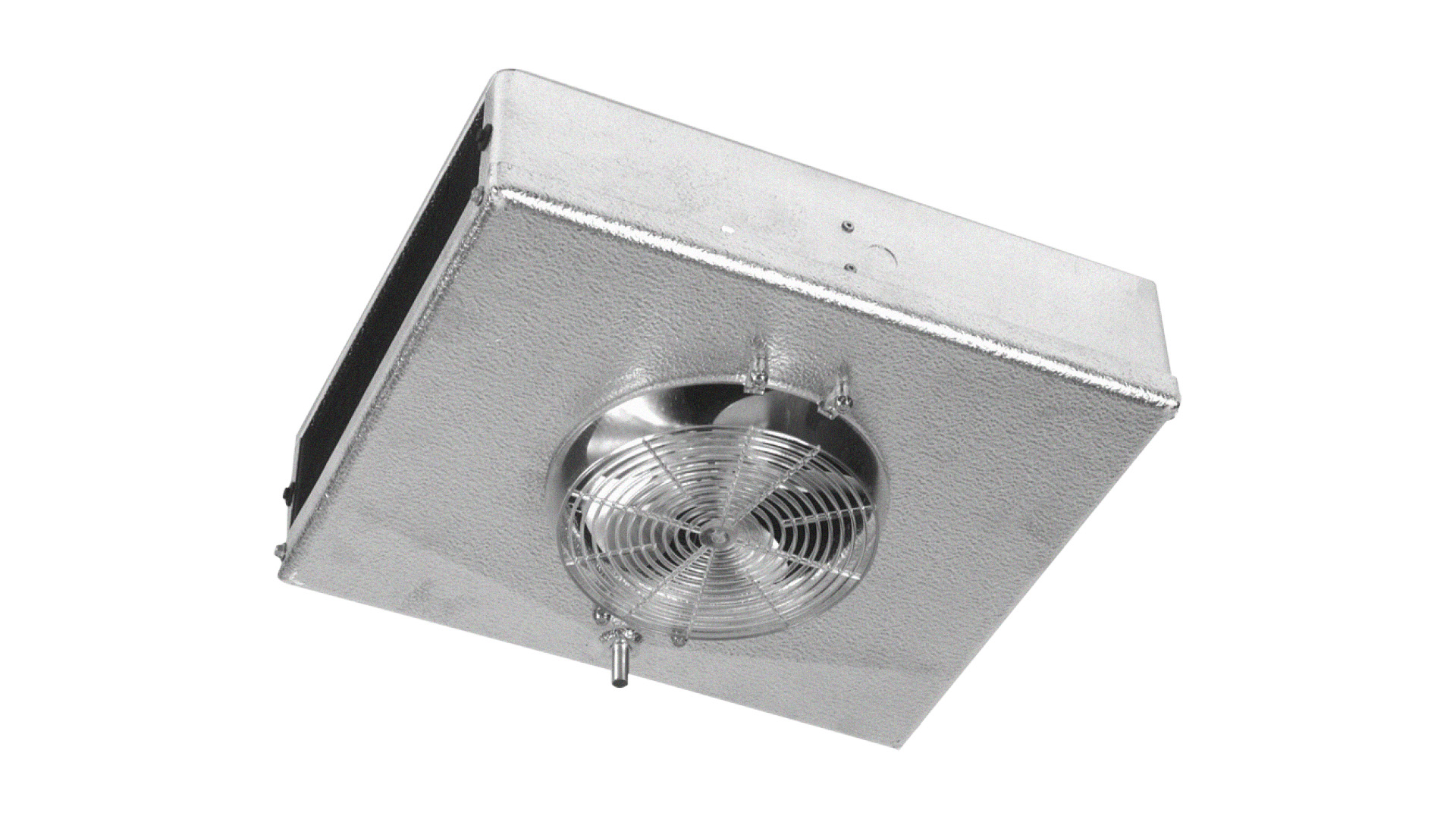 Heatcraft Twin Flow Unit Coolers have a compact two-way design with medium velocity airflow. The unit cooler is mounted flush to the ceiling and draws air in through the fan and discharges air out of both sides. The air pattern reduces air loss when doors are opened, and the medium velocity reduces product drying. Twin Flow units are for temperatures of 35°F and higher. Box temperatures are kept more constant throughout so your products stay fresher, longer. Seven sizes are available with BTUH from 900 to 5500 at 10° TD. Opting for EC motors gives you increased energy efficiency and cost savings.